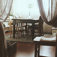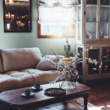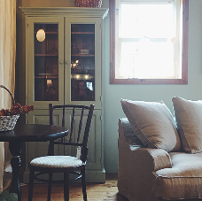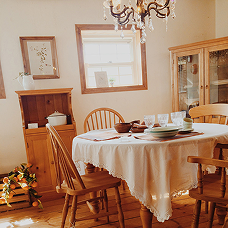 クラシカルなパイン家具とアンティークをミックスした優しい色合いのコーディネート