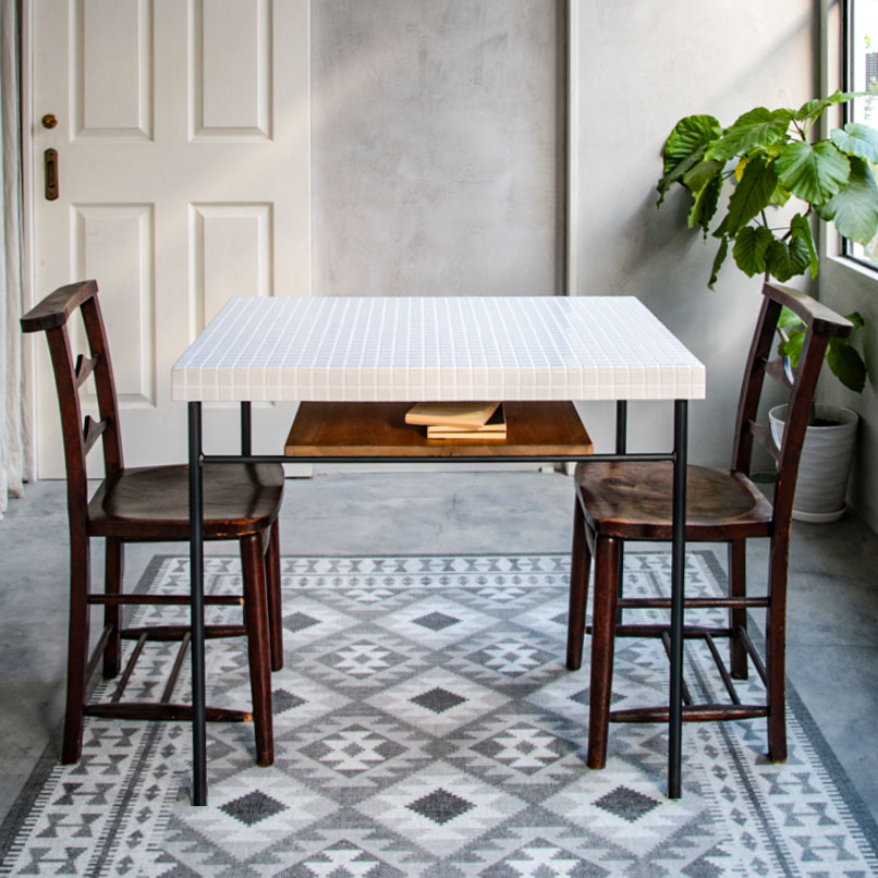 白のスチール脚+木天板のダイニングテーブル