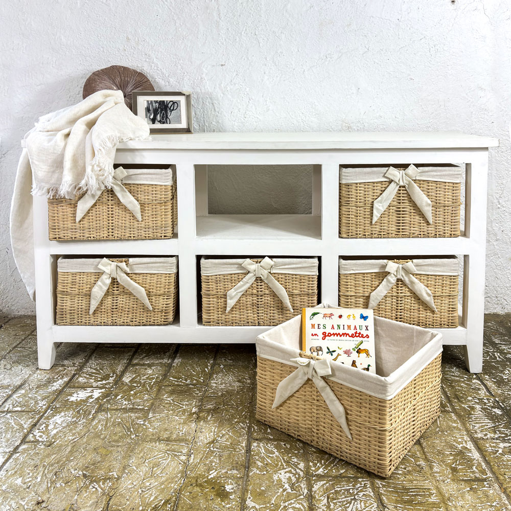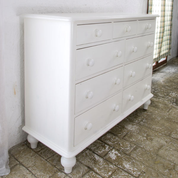 壁際に白いチェストを置けば、朝の光を柔らかく反射して、