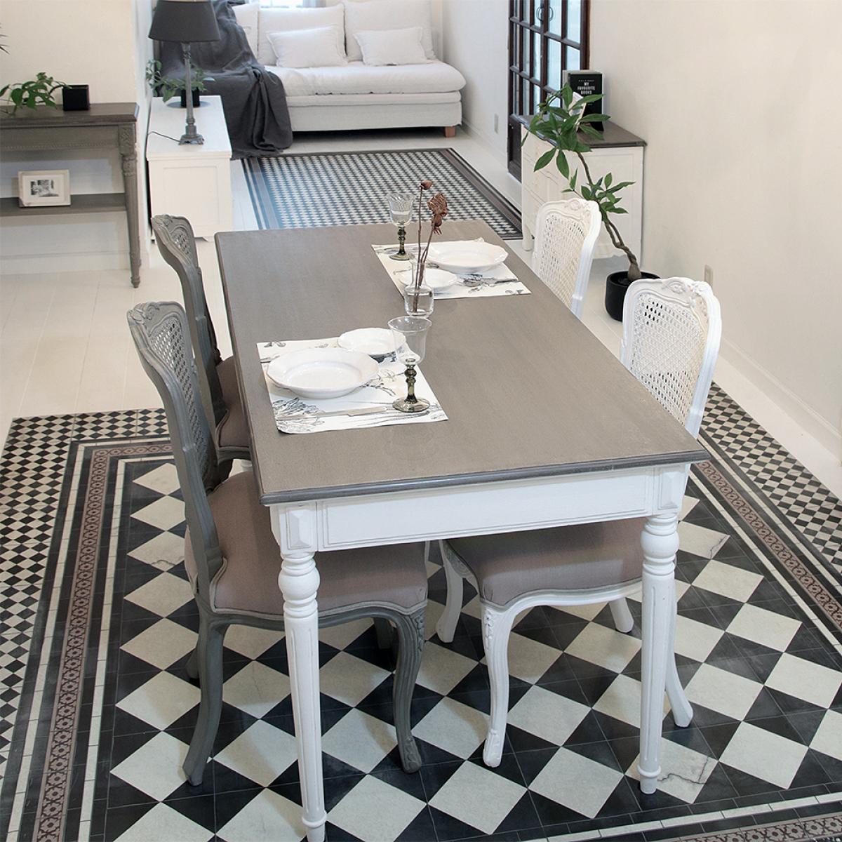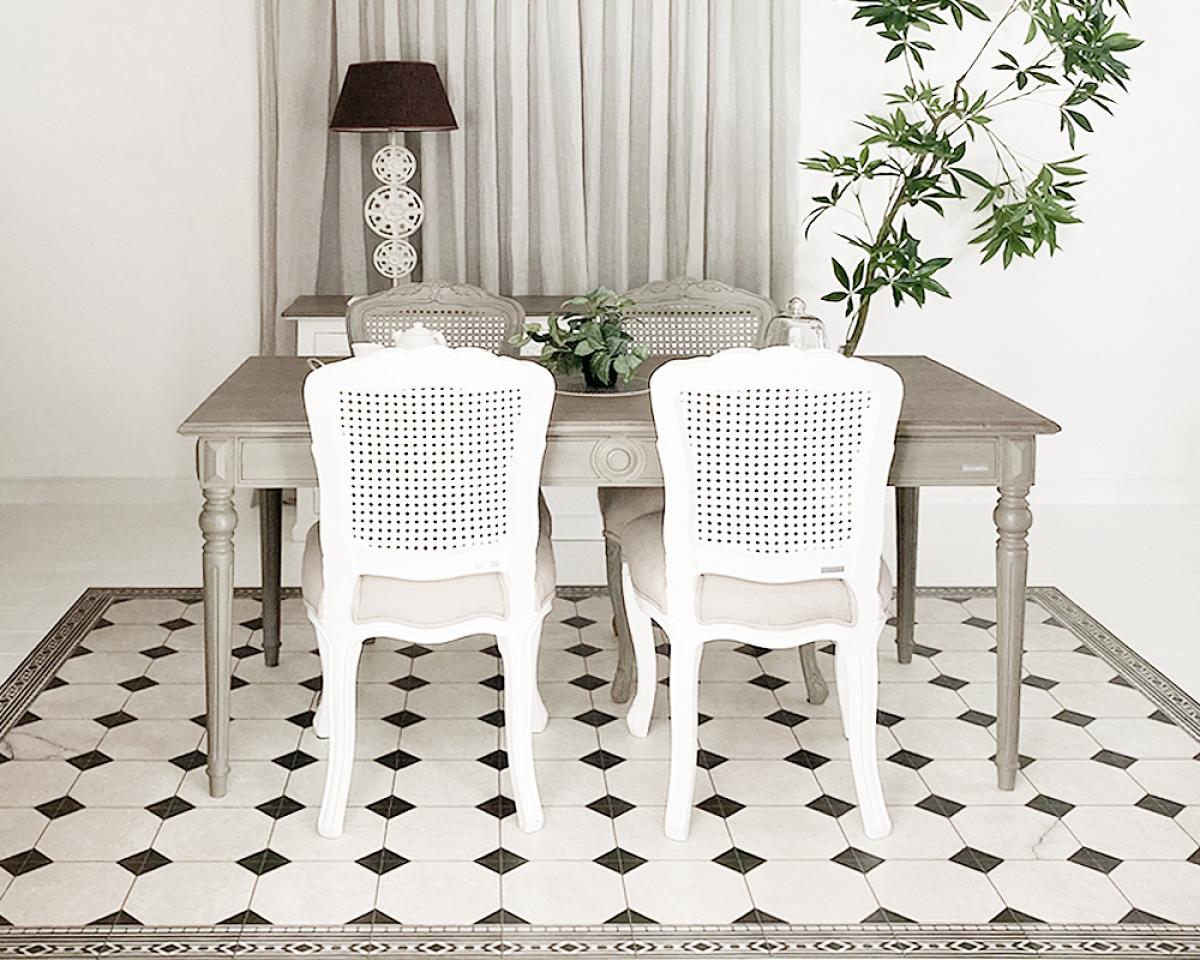 グレーのダイニングチェアやテーブルを取り入れることで、空間全体が引き締まり、落ち着いた印象に。