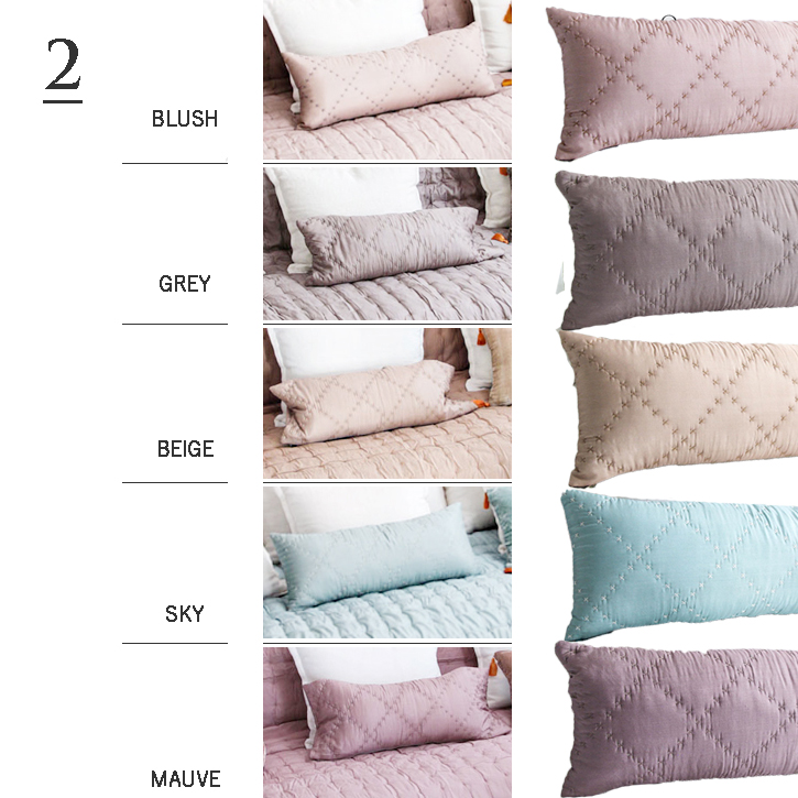 5500円シルク素材の長方形クッションを1個。腰部分にフィットするサイズ感。インテリアのアクセントとしても活躍します。5色の中からお選び下さい。