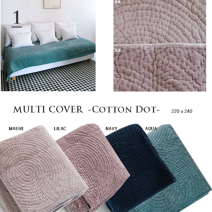 44000円のコットンベルベットxコットンのマルチカバーを1枚。。半分に折ってソファ座面だけをカバーしたり、広げてソファ全体を覆ったり、ベッドカバーにしたり。肌触り良くインテリア性の高い品質、上品な色目です。裏はコットンのリバーシブル仕様なので一年中活躍します。