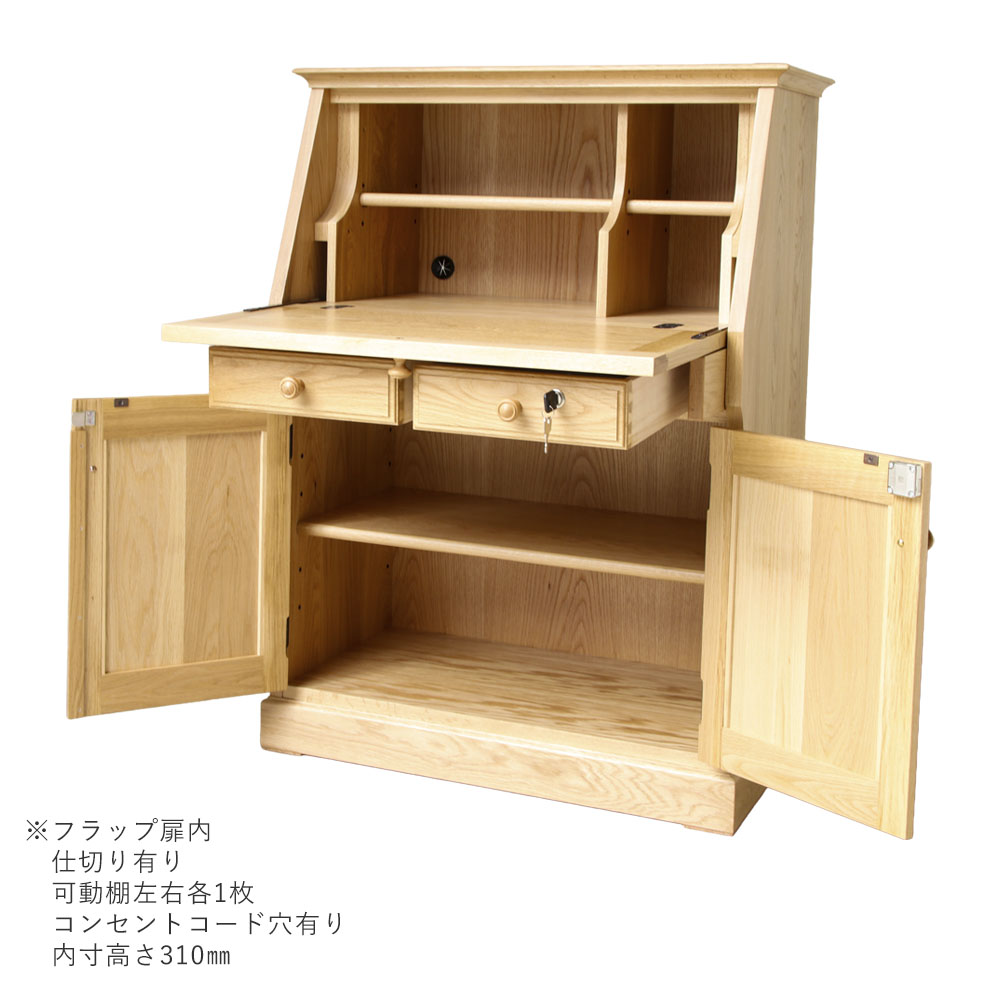 トップ > furniture-家具- > 収納家具 > キャビネット・サイドボード > 【受注生産】日本製 木製ライティングビューロー クレア ナチュラル 77B 扉タイプ 鍵付き 【開梱設置-YO】