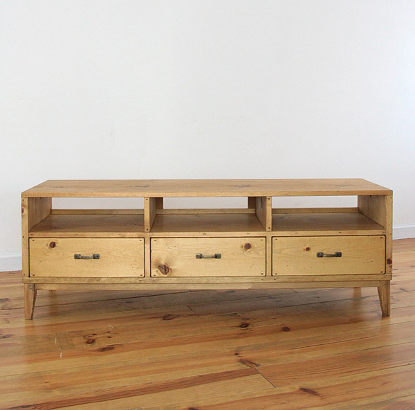こちらはオープンテレビボード。チリが無いのでラスティックビンテージ収納家具と、隙間無く並べて使って頂けます。リビングルームに木の家具を置いて、気軽に自然に触れ合う機会を作りませんか?自由に広がる木目とデコボコな木肌が、ほっと安らぐ空間を作ってくれます。