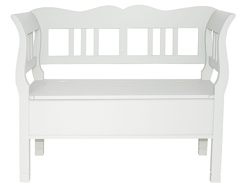 フレンチスタイル ホワイト色背付き収納ベンチ