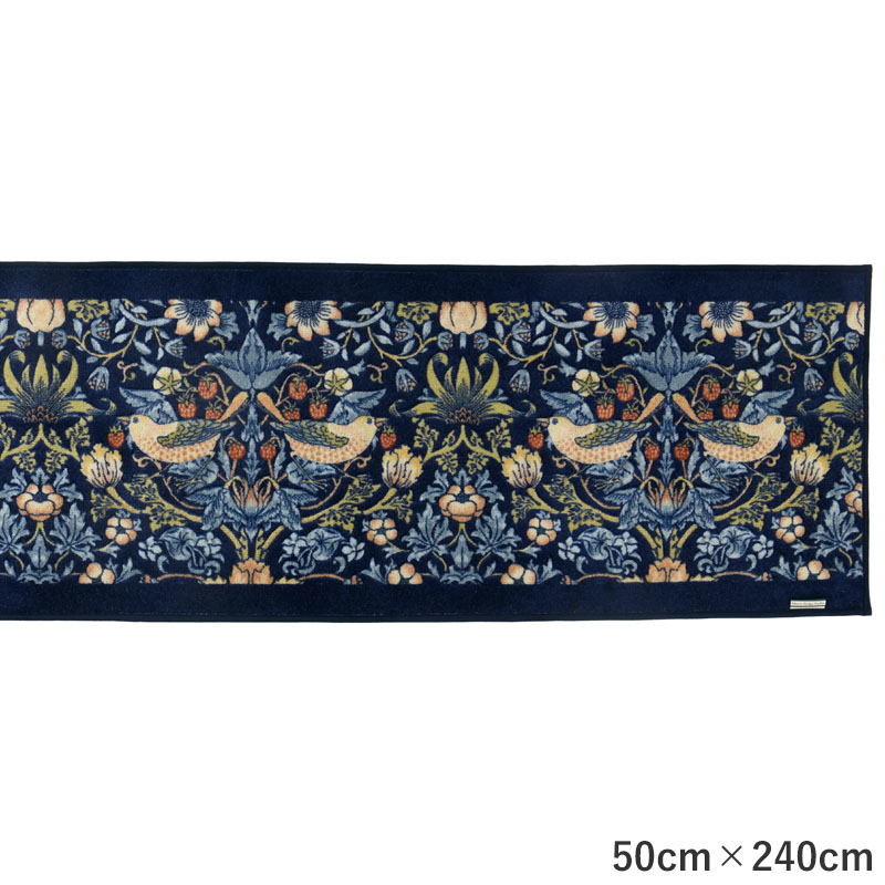 ウィリアム・モリス いちご泥棒 William Morris Strawberry Thief インテリアマット ラグ ブルー 50cm×240cm