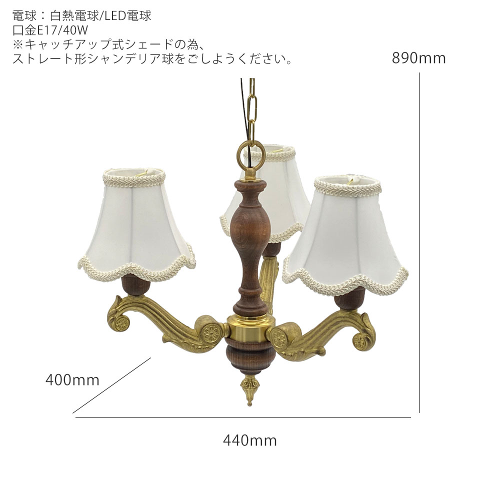 3灯照明灯具セット クラシックスタイルシャンデリア 40Wx3灯 ※電球別売