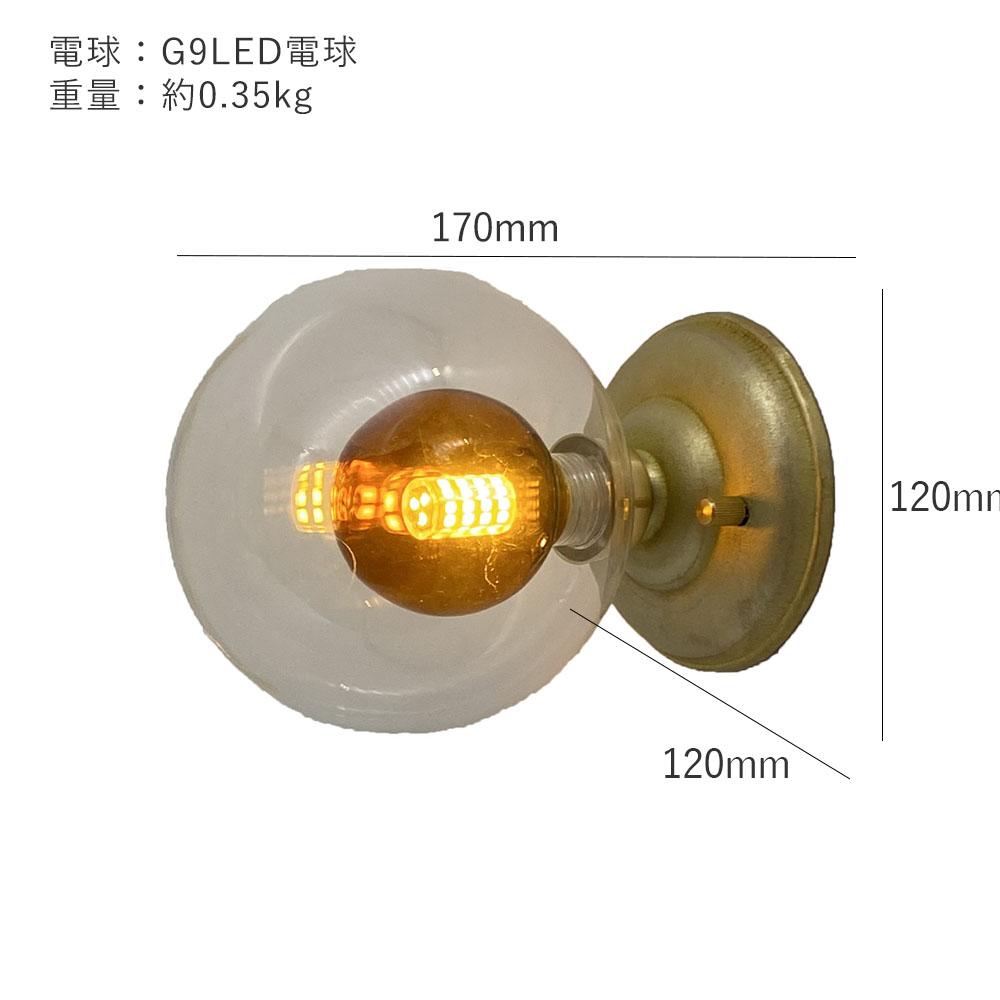 G9 Lamp 1灯ウォールランプ 屋内用 壁面照明 ライト ゴールド G9LED電球付き G9W10G 02