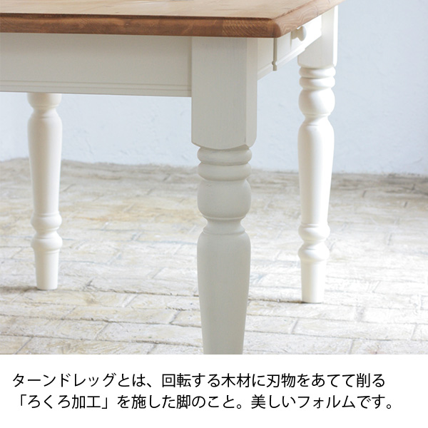 脚をホワイト色にペイントしたフレンチスタイルのダイニングテーブル。