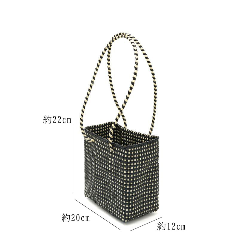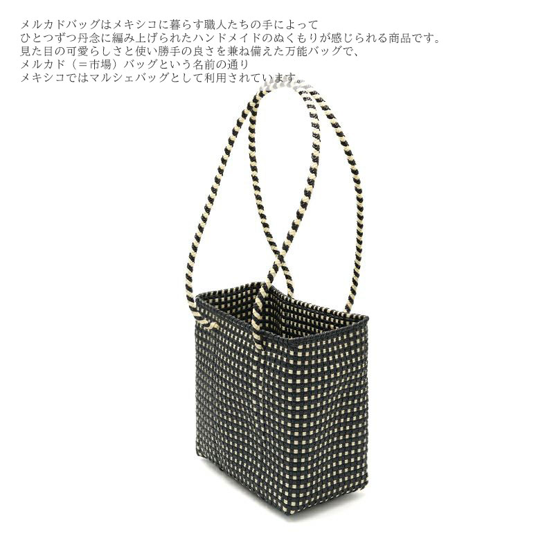 2026 MERCADO BUCKET SLIM STYLE MINI CHECK Black Cream LONG HANDLE メルカドバッグ ショッピングバッグ ハンドメイド