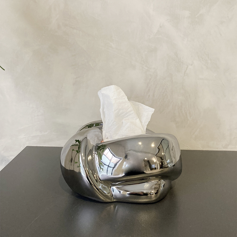 ツイストデザインが特徴、オブジェのようなティッシュボックスです。