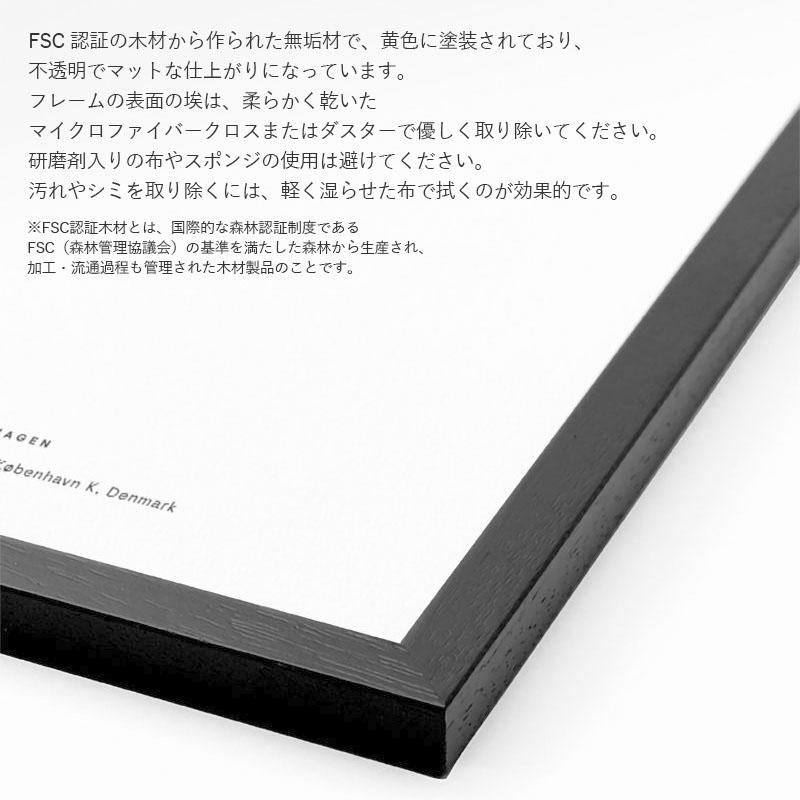 スカンジナビアの職人技にインスピレーションを得たポスタークラブの塗装済み木製フレームは、スリムなデザインが表現が特徴で、アートプリントを美しく引き立てます。フレームの背面に金属製のハンガーが取り付けられており、 壁に縦にも横にも掛けることができます。※こちらはポスターフレームのみ販売です。ポスターは別途お買い求めくださいませ。