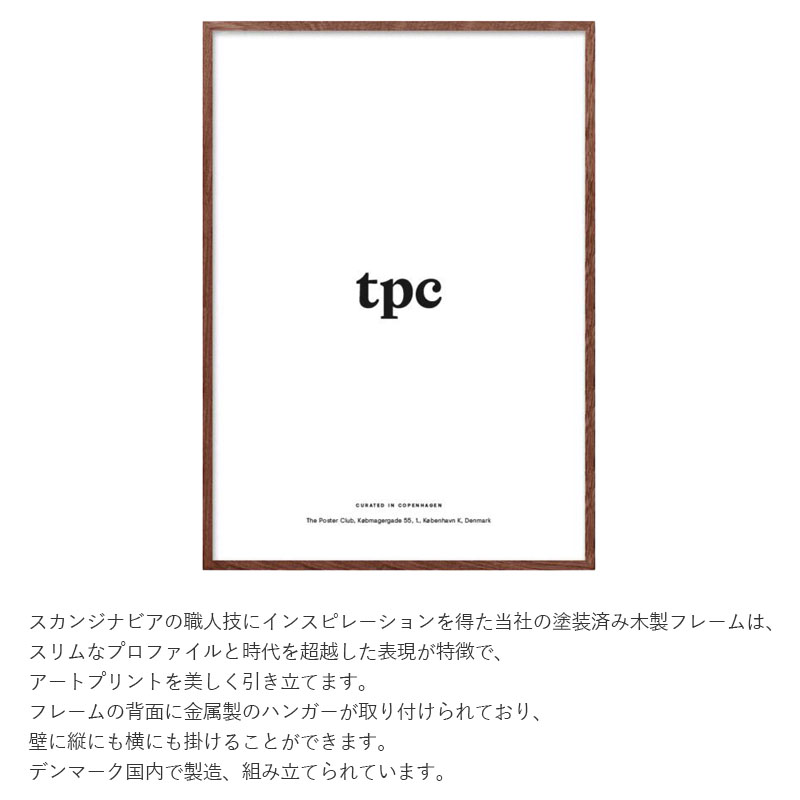 スカンジナビアの職人技にインスピレーションを得たポスタークラブの塗装済み木製フレームは、スリムなデザインが表現が特徴で、アートプリントを美しく引き立てます。フレームの背面に金属製のハンガーが取り付けられており、 壁に縦にも横にも掛けることができます。※こちらはポスターフレームのみ販売です。ポスターは別途お買い求めくださいませ。
