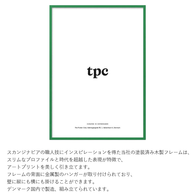 スカンジナビアの職人技にインスピレーションを得たポスタークラブの塗装済み木製フレームは、スリムなデザインが表現が特徴で、アートプリントを美しく引き立てます。フレームの背面に金属製のハンガーが取り付けられており、 壁に縦にも横にも掛けることができます。※こちらはポスターフレームのみ販売です。ポスターは別途お買い求めくださいませ。
