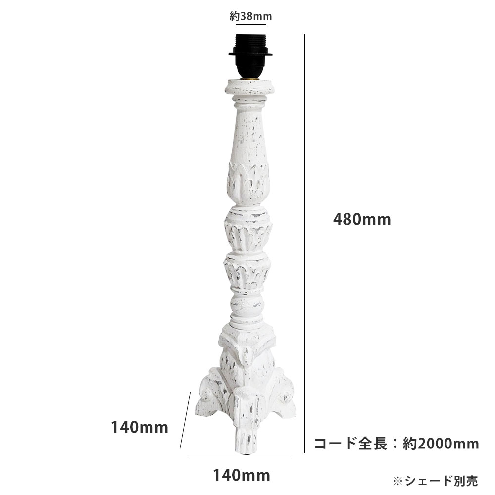 トップ > Lighting-照明- > 卓上・フロアランプ > BLANC PEINTURE フレンチスタイルテーブルランプ アンティーク加工 PW色 E26 LED電球対応 国内仕様変更【PSE取得商品】【シェード別売】