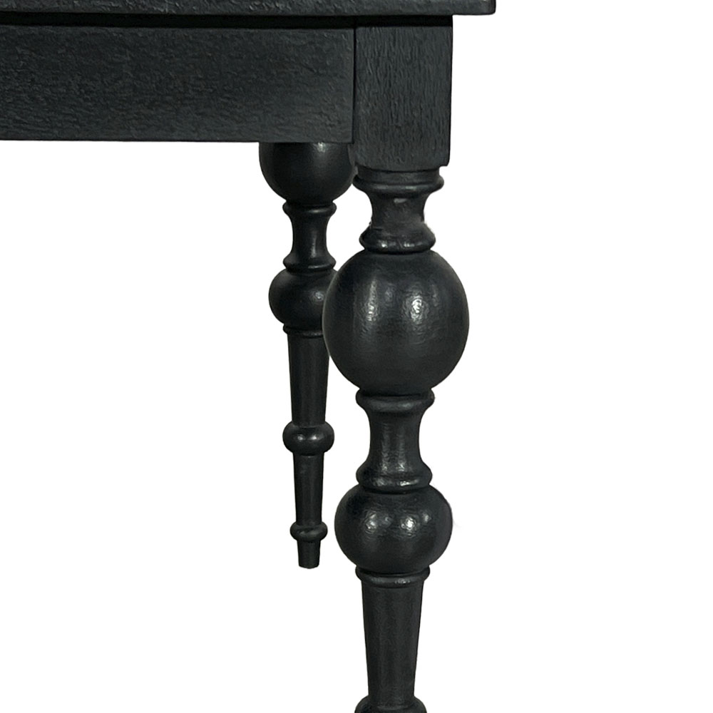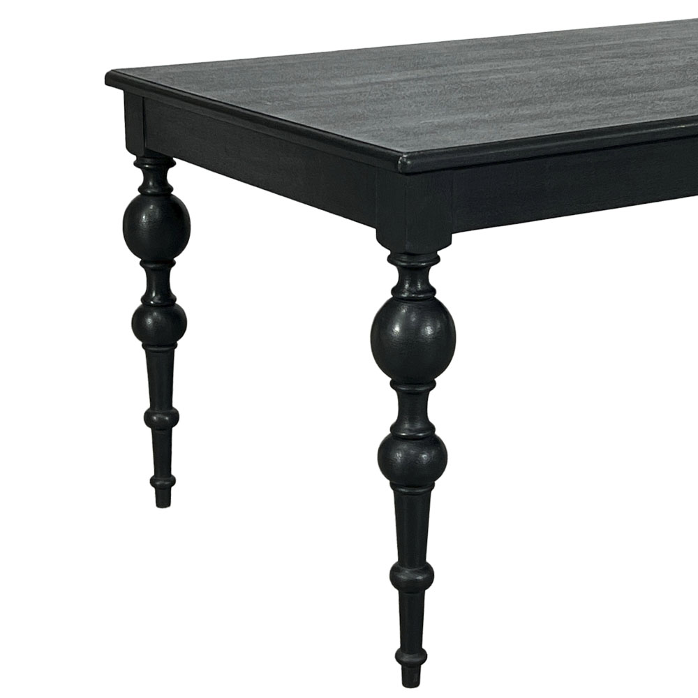 大胆なレッグデザインが魅力的なダイニングテーブル。フレンチデザインの王道スタイル。ダイニングに置くだけで雰囲気が一変します。上品でシャビーなインテリアで穏やかな日々を演出する「Blanc Peinture」シリーズの商品です。天板は凹凸のある塗装を施したアンティーク仕上げになっています。プレーンブラック仕上げをオーダーで承ることも可能です。(納期約6か月)