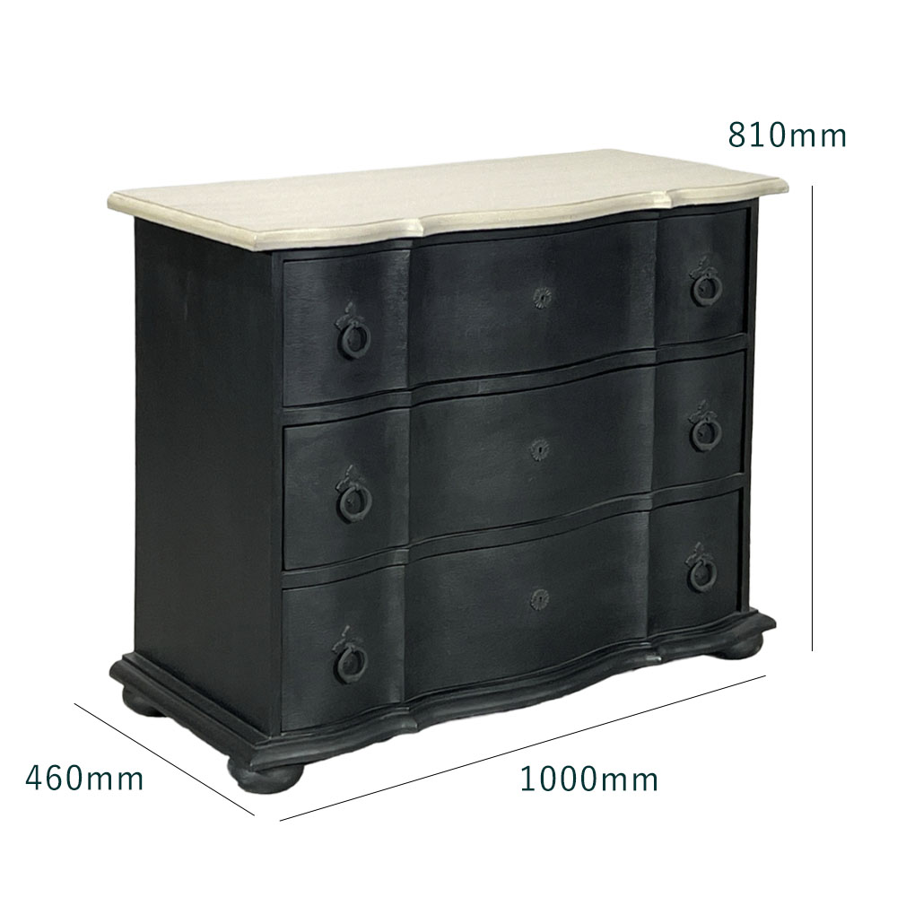 【先行予約】BLANC PEINTURE 3ドロワーキャビネット フレンチ 輸入家具 収納 BK色