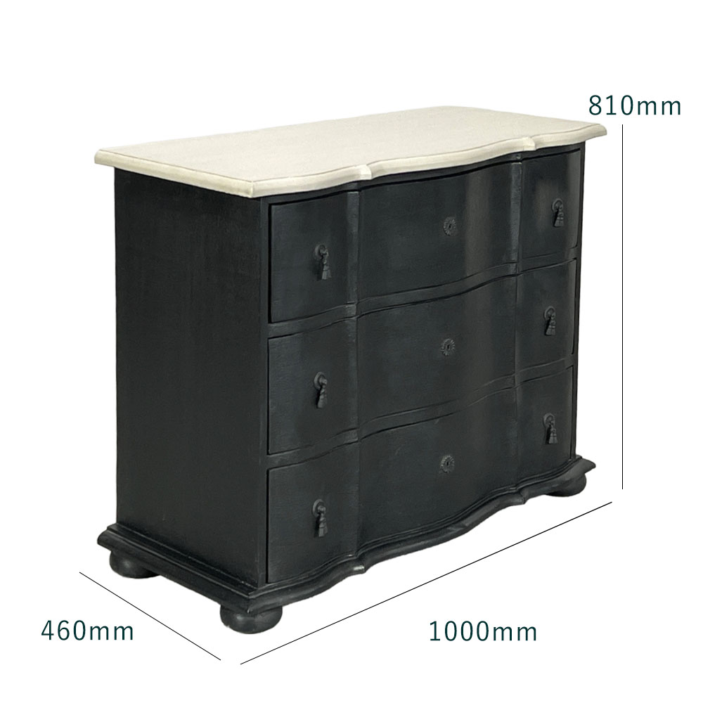 【先行予約】BLANC PEINTURE 3ドロワーキャビネット フレンチ 輸入家具 収納 BK色