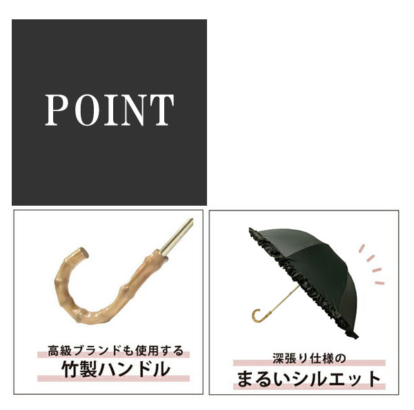 深張り日傘 フリル 直径85cm 晴雨兼用傘 長傘 ブラック