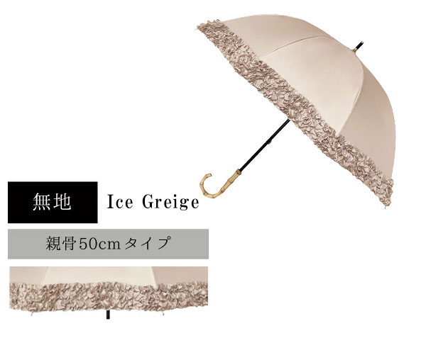 日傘 完全遮光100 深張り長傘 ミニフリル 直径77cm 晴雨兼用傘 長傘 アイスグレージュ