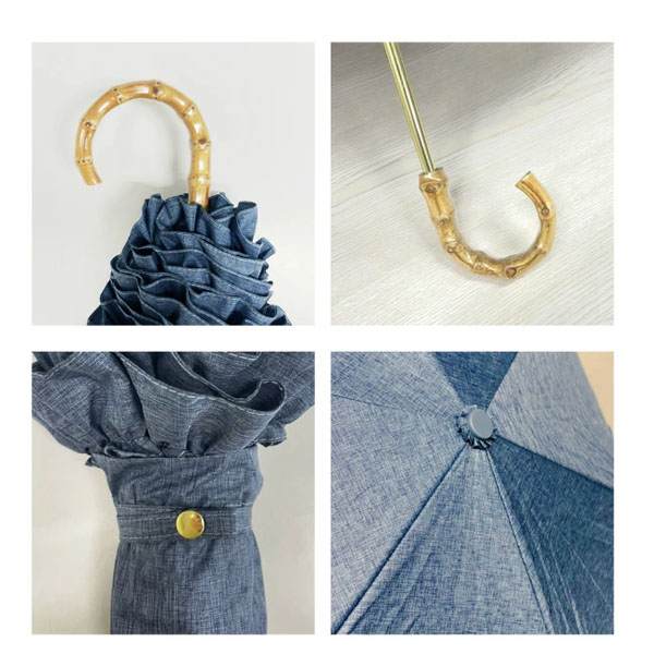 日傘 完全遮光100折りたたみジャンプ傘 フリル 直径88cm 晴雨兼用傘 デニム風ブルー