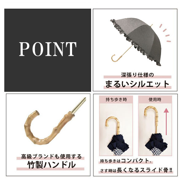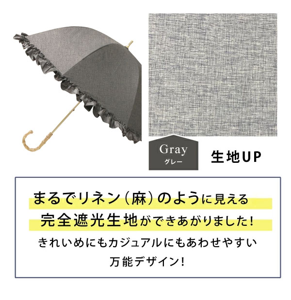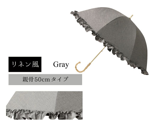 日傘 深張り日傘 フリル 直径77cm 晴雨兼用傘 長傘 リネン風グレー