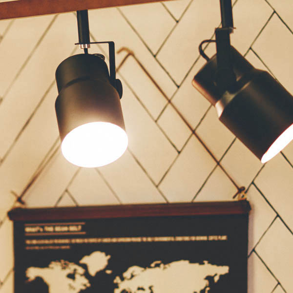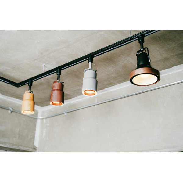 筒状になった小さなスポットライトにナチュラルなエッセンスを加えて