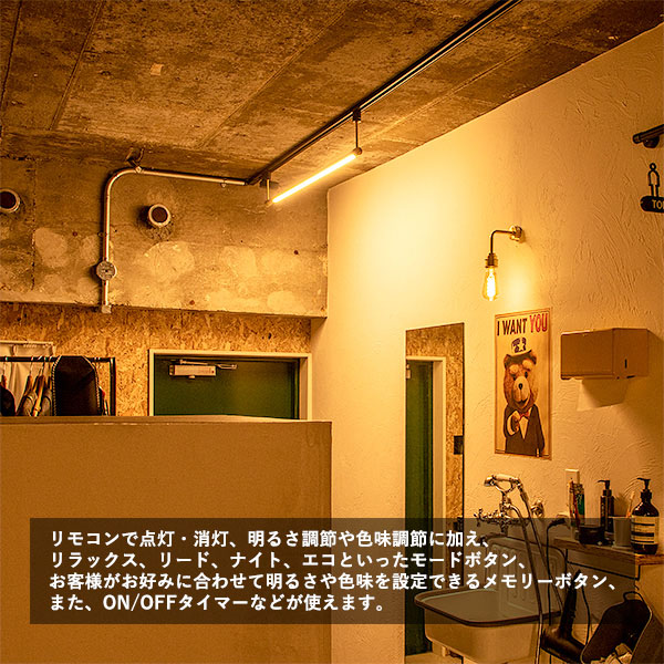 「LEDバーライト ネオマンクス」にダクトレールタイプができました。シンプルでかっこいい、でもありきたりなデザインでは無い。そんな、人とは違う楽しみをお届けします。レール用の照明といえば、スポットライトが多いですがこちらで紹介するライトは「バータイプのスタイリッシュなLEDライト」。専用リモコンで、オンオフはもちろん、明るさや色味の調節も可能。アプリに接続すれば外出先からも操作できます。出張や旅行などで家を空ける時の防犯対策にもなります。スマートスピーカーにも接続できるので音声操作もOK。ライトの角度は調節できるので光を上に向けたり、横に向けたり、真下に向けたり。照らす角度によって雰囲気がガラッと変わります。リモコンで点灯・消灯、明るさ調節や色味調節に加え、リラックス、リード、ナイト、エコといったモードボタン、お客様がお好みに合わせて明るさや色味を設定できるメモリーボタン、また、ON/OFFタイマーなどが使えます。