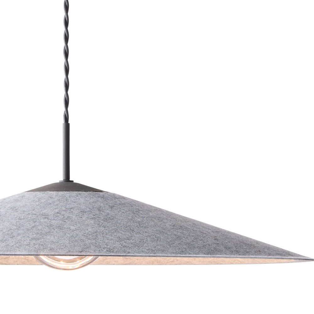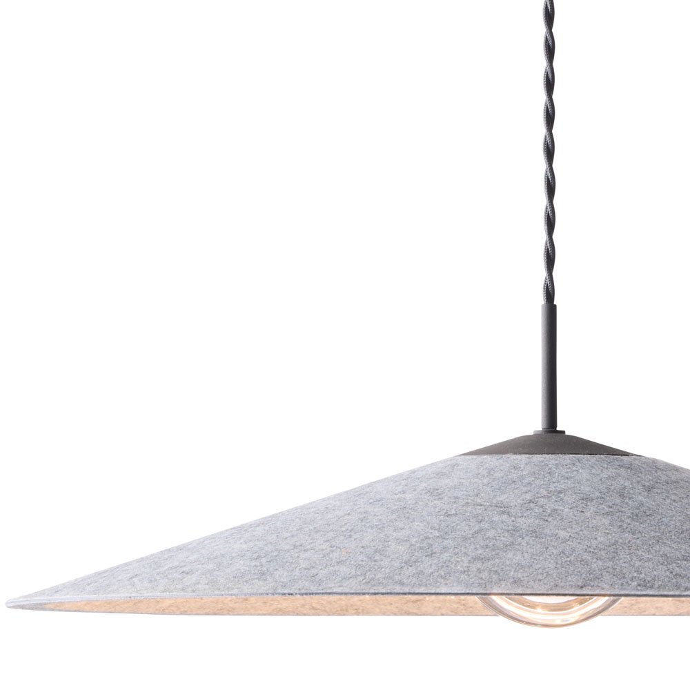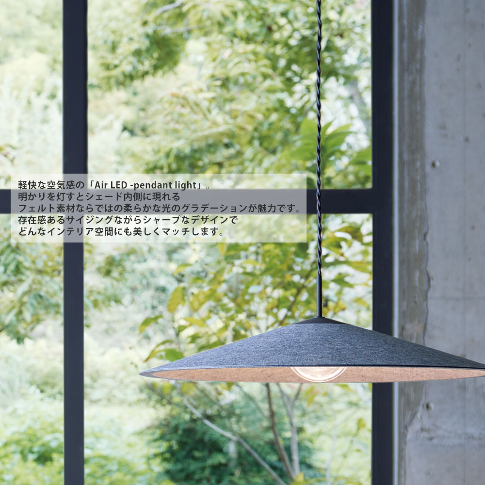 - 軽快な空気感の「Air LED -pendant light」。明かりを灯すとシェード内側に現れるフェルト素材ならではの柔らかな光のグラデーションが魅力です。存在感あるサイジングながらシャープなデザインでどんなインテリア空間にも美しくマッチします。