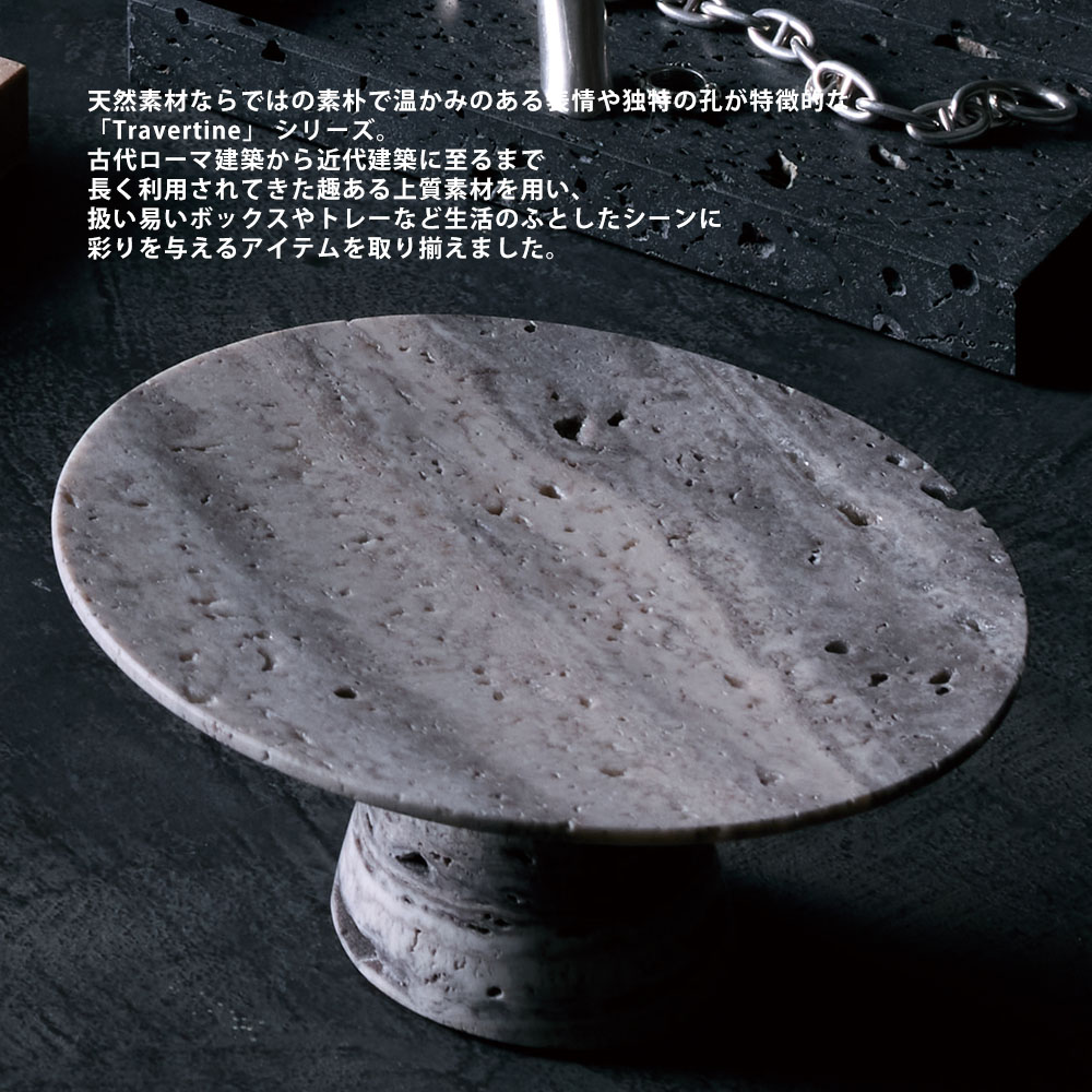 - 天然素材ならではの素朴で温かみのある表情や独特の孔が特徴的な 「Travertine」 シリーズ。古代ローマ建築から近代建築に至るまで長く利用されてきた趣ある上質素材を用い、扱い易いボックスやトレーなど生活のふとしたシーンに彩りを与えるアイテムを取り揃えました。
