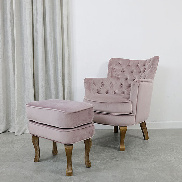 【オンラインショップ限定】【WINTER SALE】1人掛けソファ ラウンジチェア+オットマンセット ベルベットピンク x 猫脚 パーソナルチェア PJ622【玄関前渡-KS22】