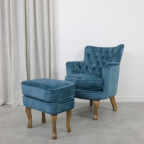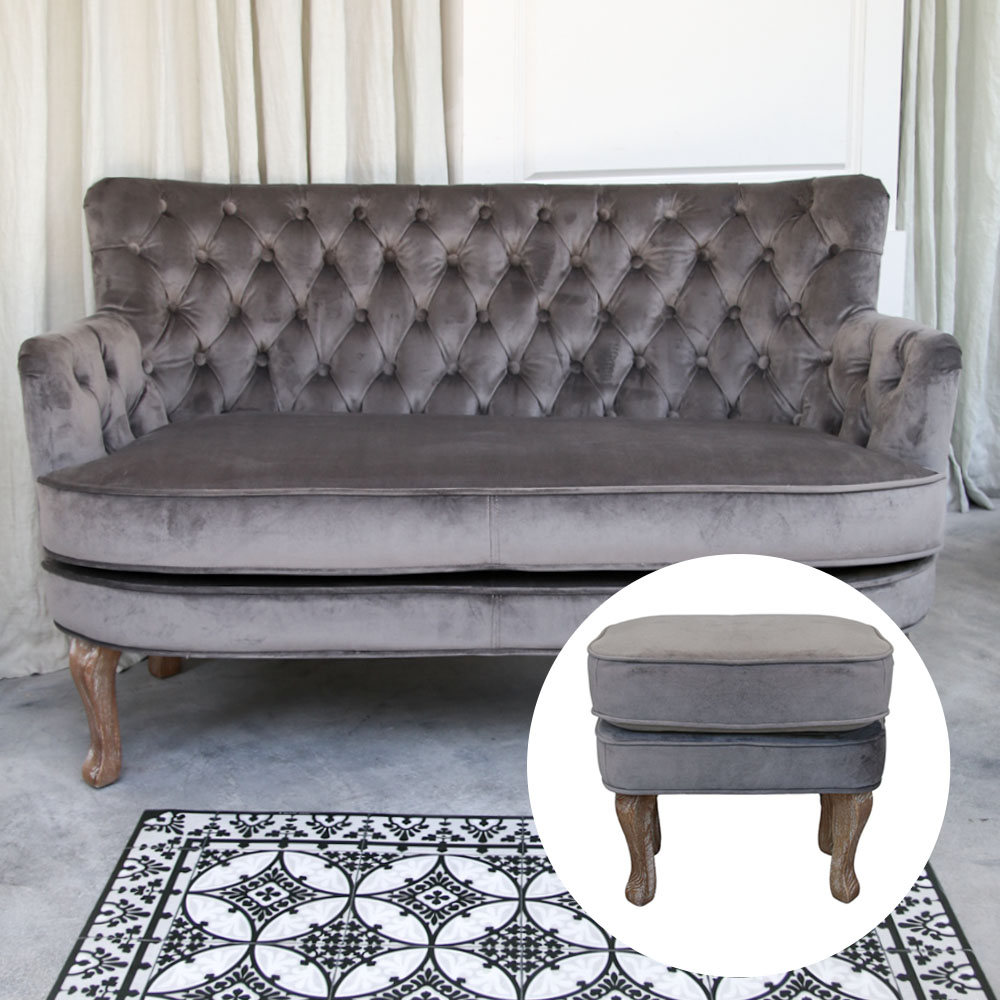 【オンラインショップ限定】【WINTER SALE】NEWカラー 2人掛けラウンジチェア+オットマンセット 2人掛けソファ ベルベットグレーx猫脚ライト色【開梱設置-KYD】