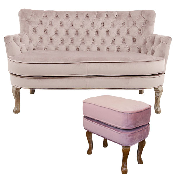 【オンラインショップ限定】【WINTER SALE】2人掛けソファ ラウンジチェア+オットマンセット ベルベットピンク x 猫脚 PJ622【開梱設置-KYD】