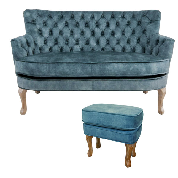 【廃盤生地】2人掛けソファ ラウンジチェア ベルベットブルーx猫脚ライト色 2Pソファ【開梱設置-KYD】