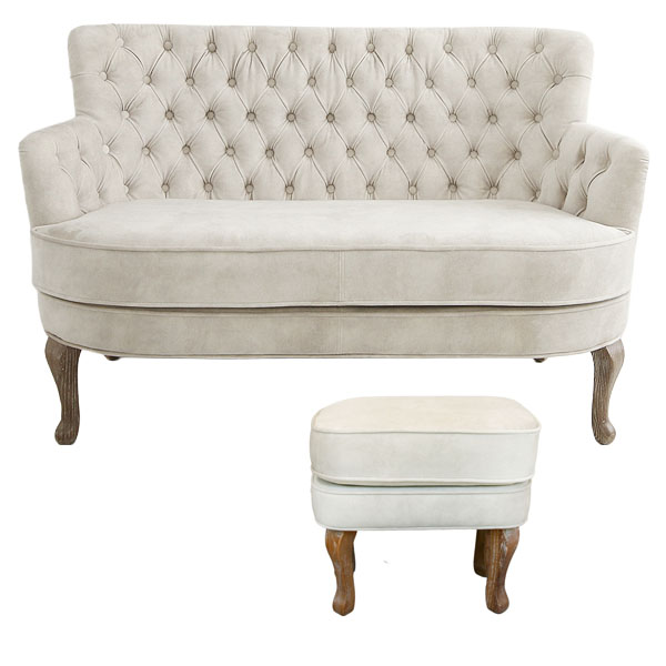【オンラインショップ限定】【WINTER SALE】2人掛けソファ ラウンジチェア+オットマンセット ベルベットアイボリー x 猫脚 【開梱設置-KYD】