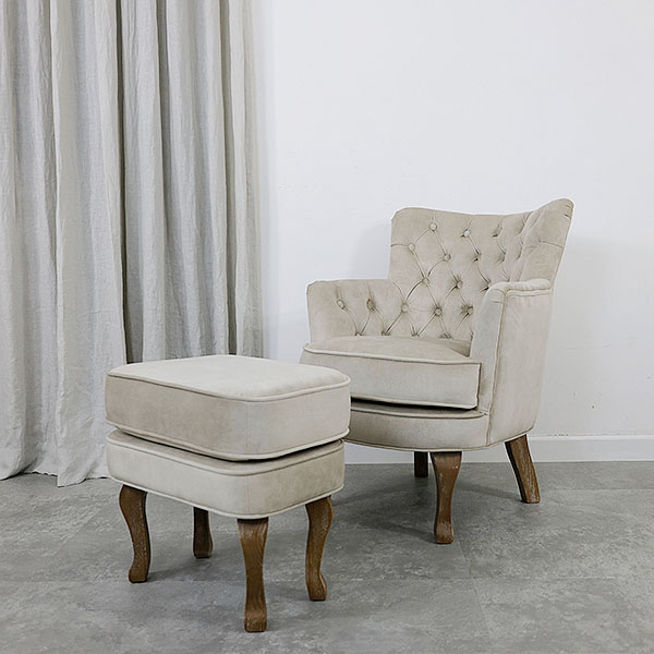 【オンラインショップ限定】【WINTER SALE】1人掛けソファ ラウンジチェア+オットマンセット ベルベットアイボリー x 猫脚 パーソナルチェア【玄関前渡-KS22】